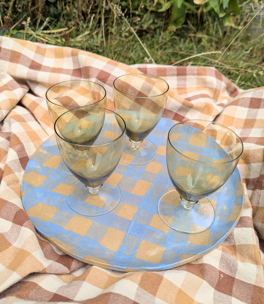 Set of Four Amber Stemmed French Vintage Wine Glasses