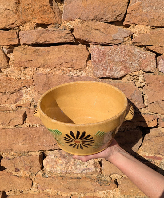 Large Cream Vintage French Floral Glazed Pot from the Alsace