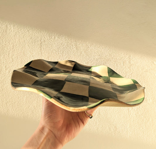 Smokey Olive & Burgundy Wavy Check Platter