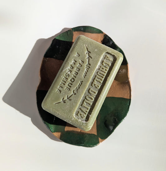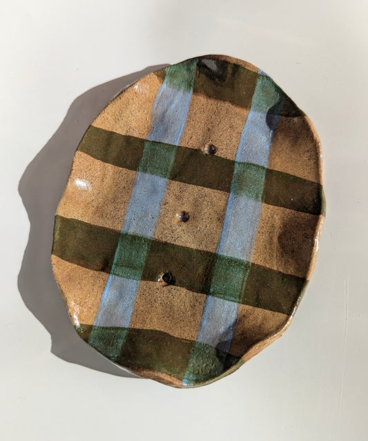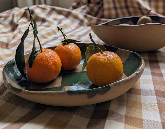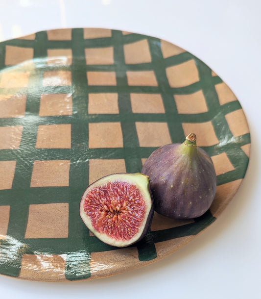 Set of Four Green Wavy Check & Scalloped Side Plates