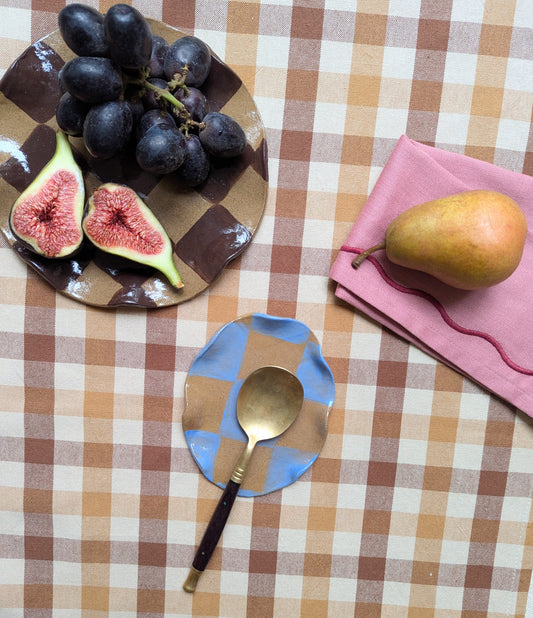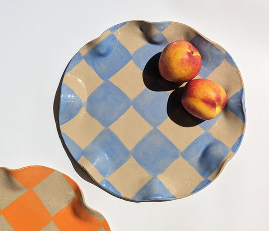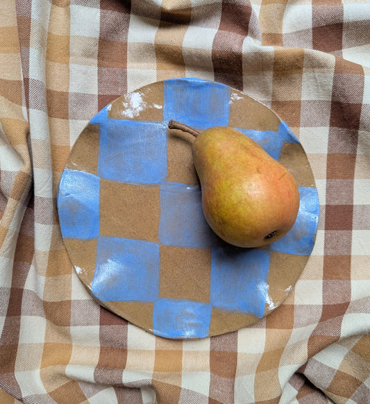 Baby Blue & Burgundy Round Gingham Serving Bowl