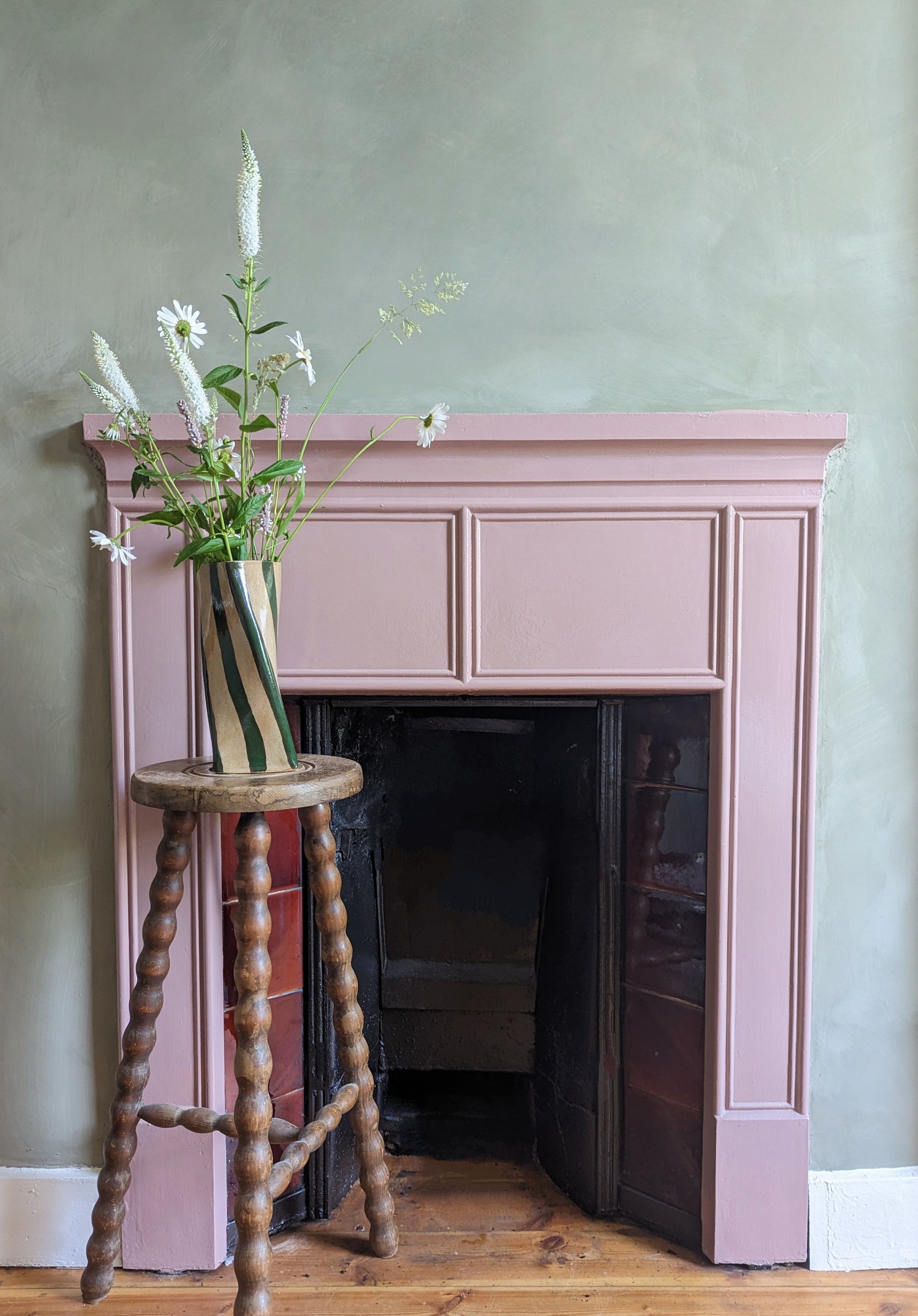 Our ceramic stoneware twisting striped vase is a perfect statement piece for any mantel, sideboard or dining table. Designed and made by us in London, this charmer is completely waterproof and the perfect size for a large bunch of flowers.