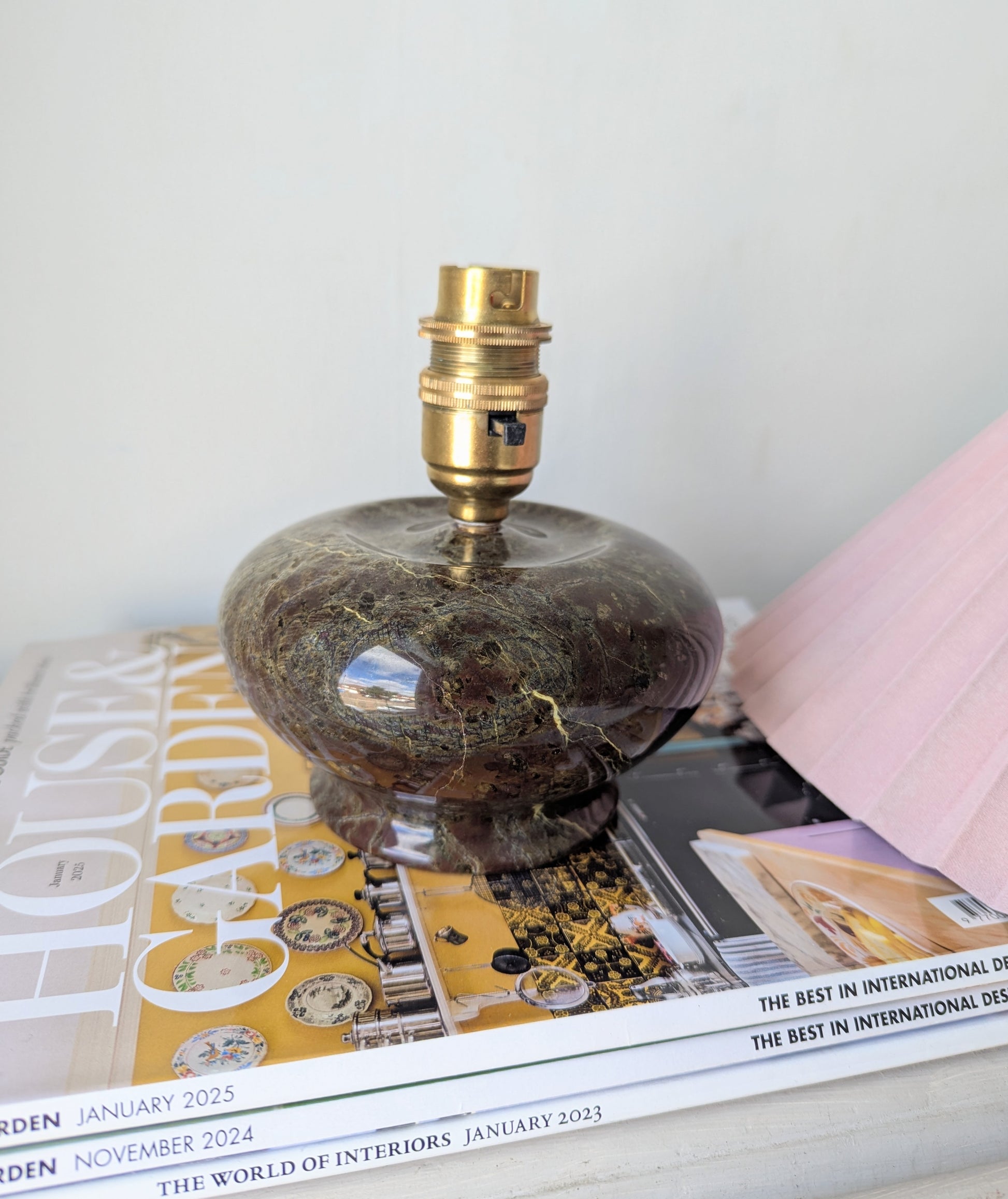 A wonderful patterned stone with beautiful flashes of pink inside the green-grey serpentine. Hand turned in Cornwall this lamp will bring character and pattern to a corner in your kitchen or on a sideboard.