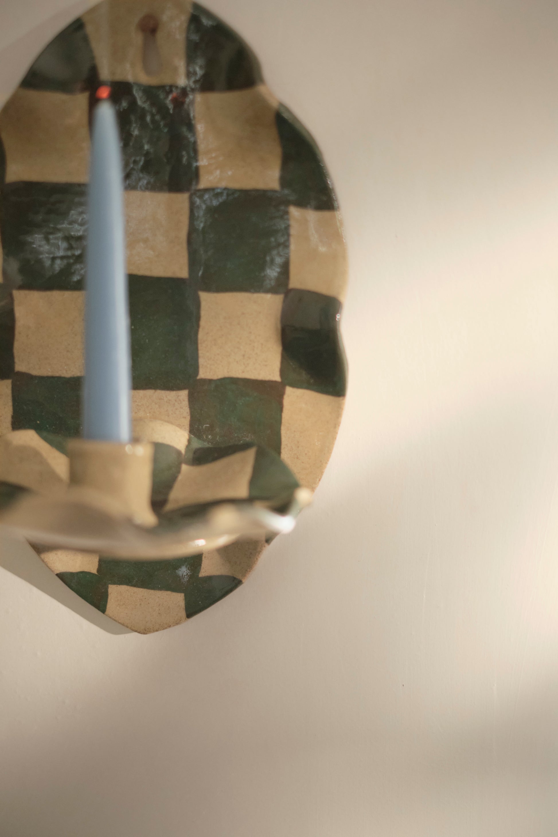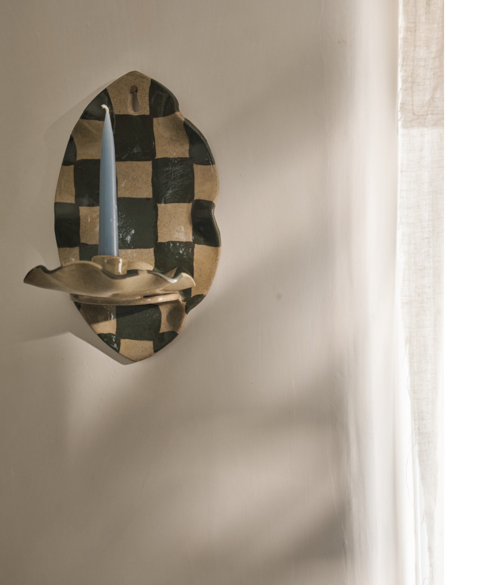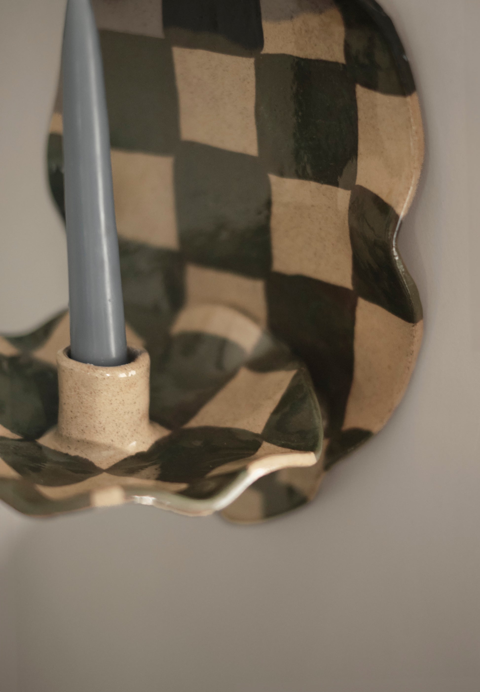 Here is our handcrafted stoneware wavy candle sconce, designed and made by Rosie Gore in her London studio. Each piece is meticulously crafted by hand, ensuring that no two pieces are alike.